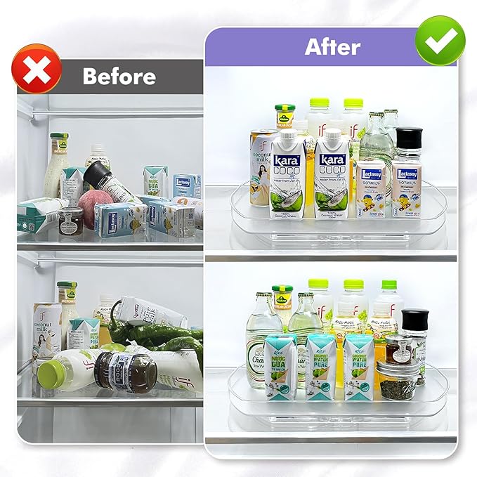 • VERSATILE DESIGN: This durable organizer, measuring 15.2" x 11.4" 2 Pack, is designed for use in the fridge, pantry, or on countertops, neatly fitting into various spaces. Please measure the size of your.