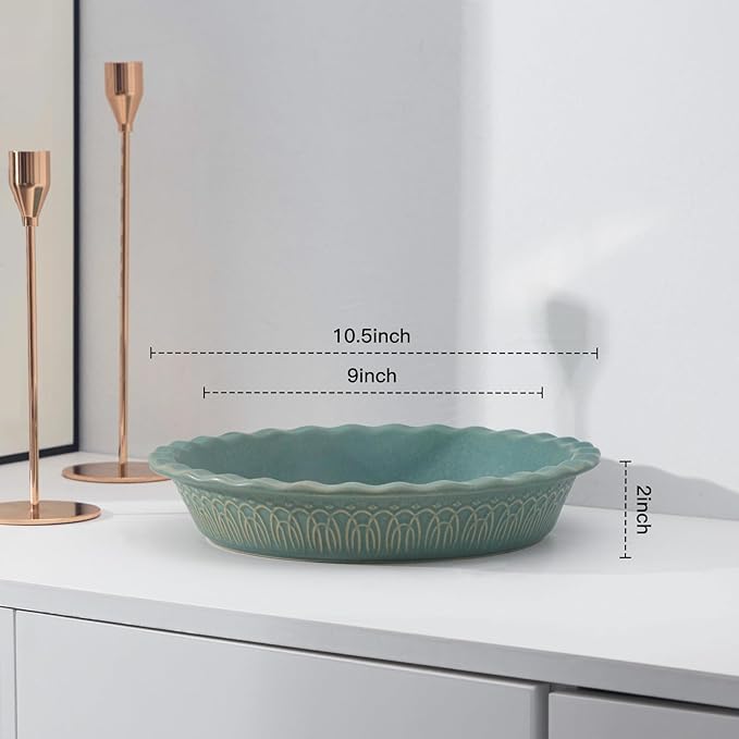 • Ceramic Baking Dish is Healthier Than Metal or Glass: Our ceramic baking pan is made of premium stoneware, which owns good thermal conductivity and can heat distribution for evenly baked pies, you'll never worry about soggy bottom.
