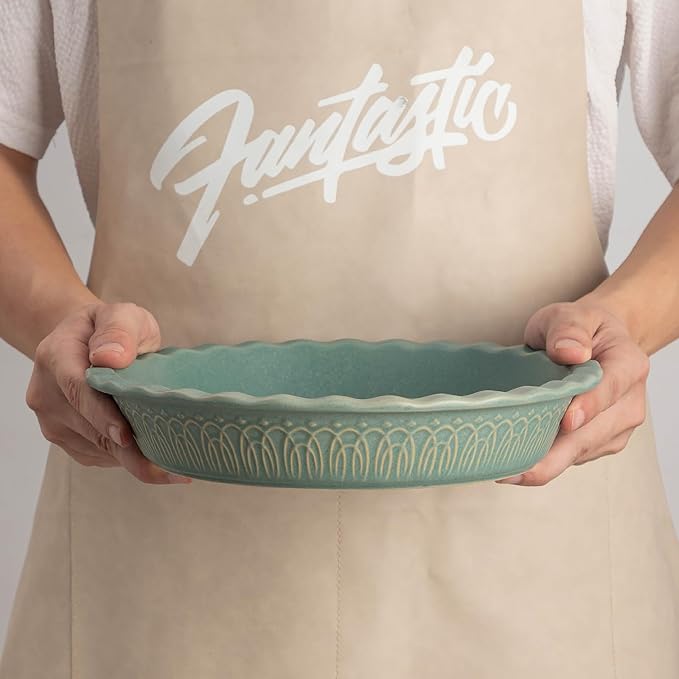 • Microwave, Oven & Dishwasher Safe: Smooth glazed surface makes this pie pan for baking 9 inch easy to clean. Just put it directly into the dishwasher and it comes out spotless.