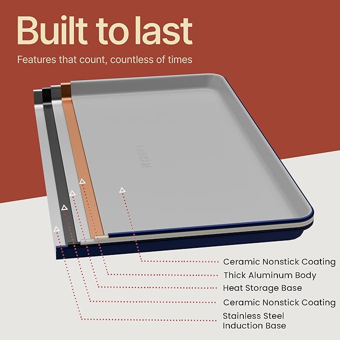 • Superior Durability and Heat Distribution: Made from high-gauge aluminized steel, this bakeware set guarantees durability and even heat distribution for consistently excellent results.