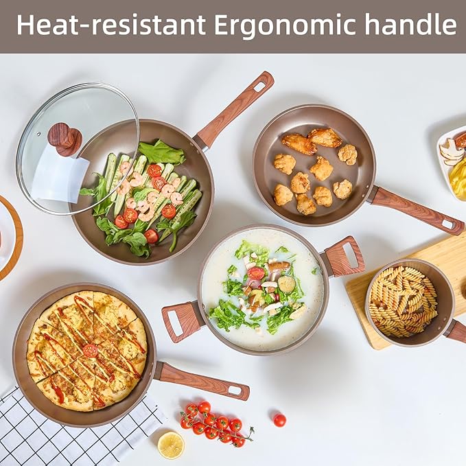 • [DIFFERENT COOKING SCENARIOS] : Unleash your culinary creativity with this stylish non stick pots and pan set by RATWIA. From sautéing and frying to simmering and stewing, this set is perfect for whipping up all kinds of recipes with ease