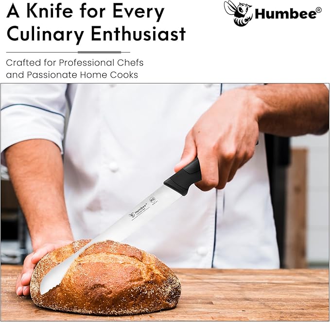 • PROFESSIONAL SERRATED EDGE: This 10-inch knife is designed with a serrated edge. It glides through crusty bread with ease, which ensures smooth, clean slices every time.