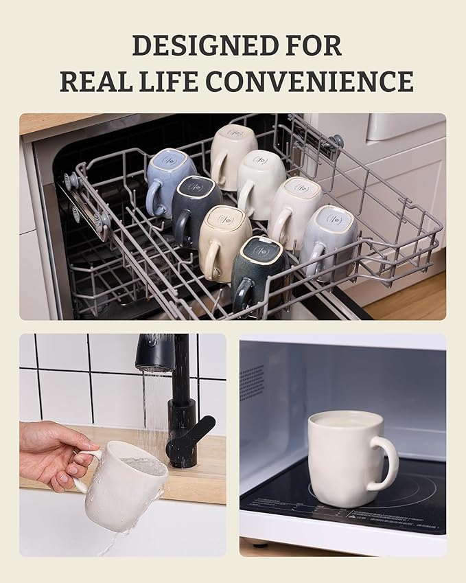 • 【Dishwasher and Microwave Safe】 Famiware Stoneware coffee cups for the kitchen are made of premium stoneware. Each plate and bowl is dishwasher and microwave safe.