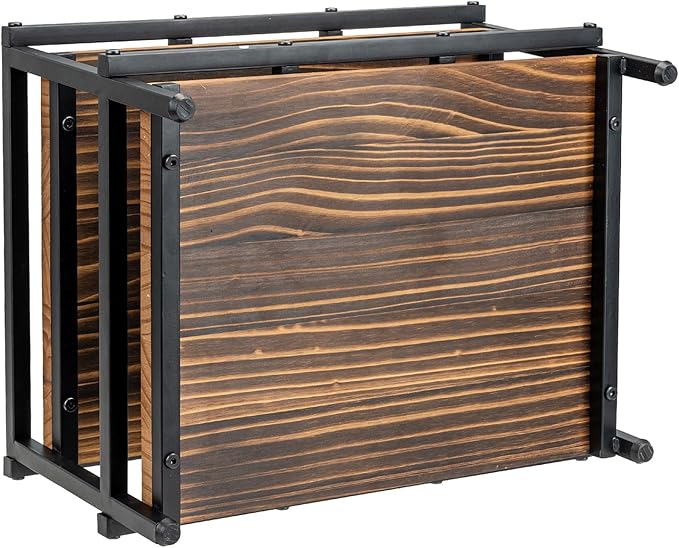 • Can organizer is crafted with a combination of matte black metal and rustic burnt solid wood, offering a durable and stylish addition to your pantry. The industrial aesthetic blends seamlessly with modern or farmhouse kitchen decor