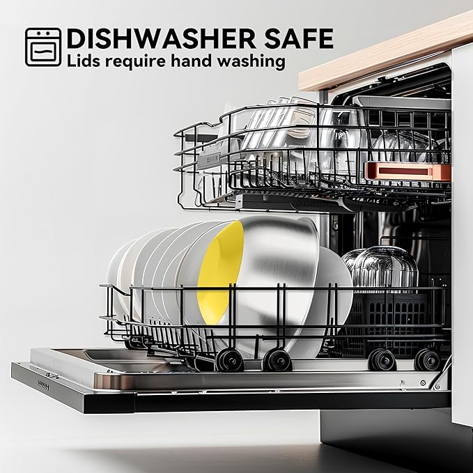 • 【Easy to Clean】: Made from quality stainless steel, these bowls are dishwasher safe (excluding lids), offering hassle-free cleanup so you can spend more time enjoying your meals.