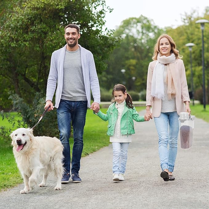 • FUNCTION : This airtight dog food container with portable handle has an airtight design,-has 2 silicone seals and 4 sealing buckles,which can keep your food dry and fresh, the portable handle and large spout design can easily Easily pours food out,also perfect for traveling, hiking, camping or picnicking with your dog。