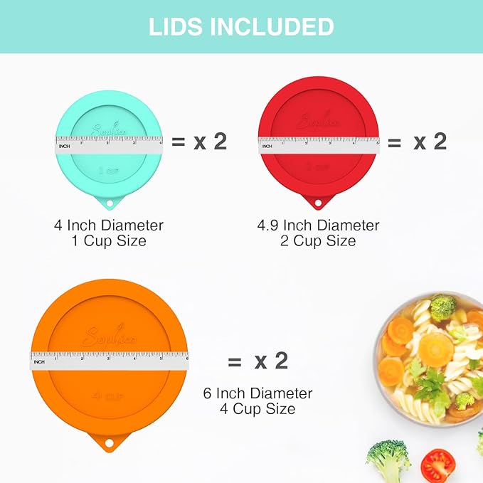 Sophico Round Silicone Storage Cover Lids Replacement for Anchor Hocking and Pyrex Glass Bowls (Container not Included) (MIX-6 PACK)