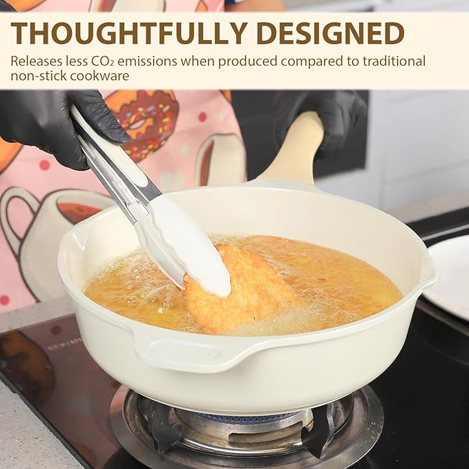 • Toxin-Free Healthy Cooking Set: When buying, choose sets explicitly labeled lead, PFOS, and PFOA-free—these harmful chemicals pose potential health risks. Thankfully, toxin-free granite cookware options exist. Choose Romswi healthier Non Toxic cookware set