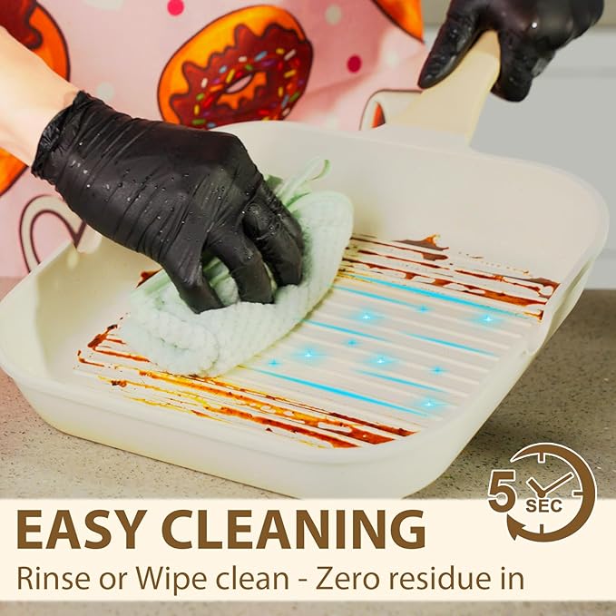 • Easy Cleaning - Dishwasher-safe. Note: natural aluminum will discolor when placed in a dishwasher. We recommend hand simple rinse or quick wipe effortlessly removes any residue, ensuring your cookware remains spotless and maintains its pristine condition with ease.