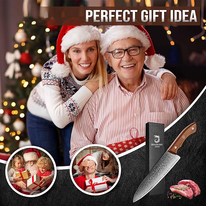 • 【Elegant Gift】Packaged in an elegant gift box, the DRAGON RIOT chef's knife makes a thoughtful present. It's perfect for home cooks and professional chefs alike. A combination of style, quality, and functionality makes it the ideal gift for any occasion.