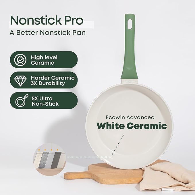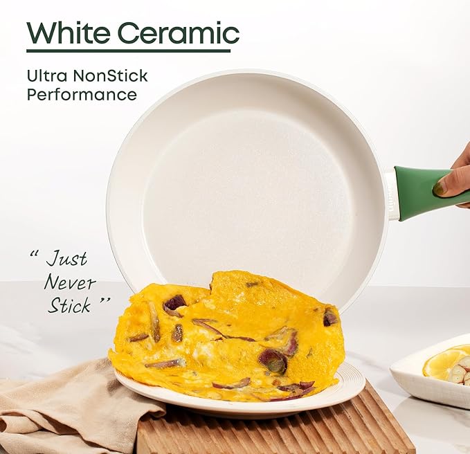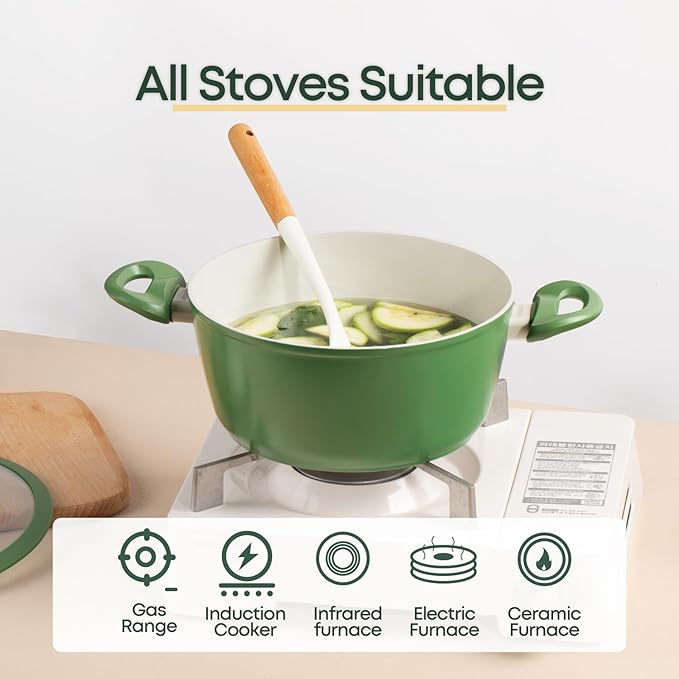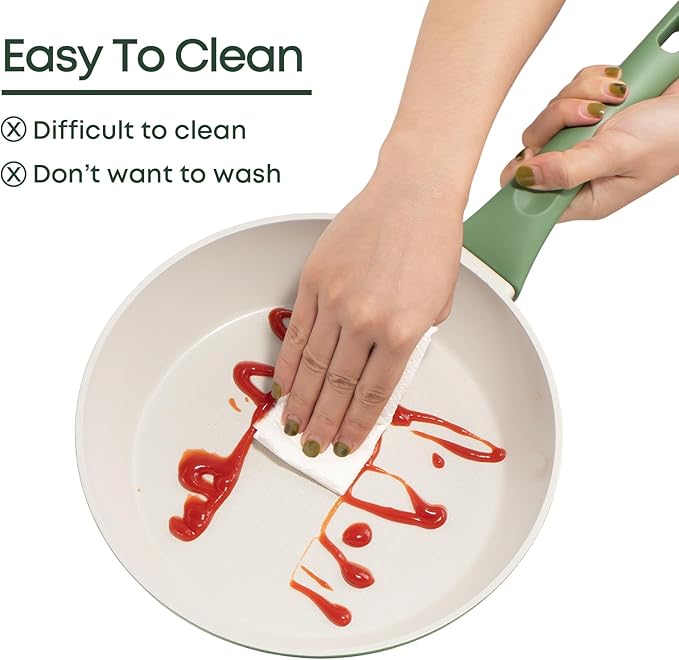 • Non-Stick - Easy to Clean: Non-Stick Ceramic materials use less oil and less smoke. Cleaning is healthier and more convenient as it requires only towels, soap and warm water to clean easily. It is recommended to wash by hand to extend the life of the pot.