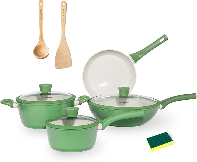 10Pcs Pots and Pans Set,nonstick Cookware Set Kitchen Cooking Set,Non-toxic Healthy Ceramic Induction Cookware Sets with firm heat-resistant handle(PFOA Free)