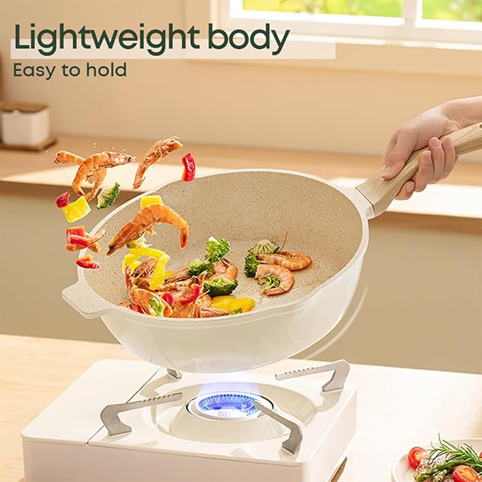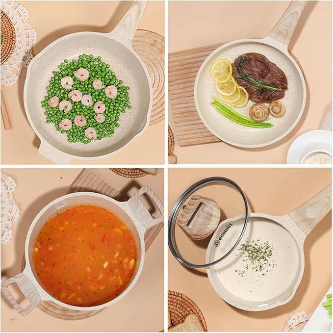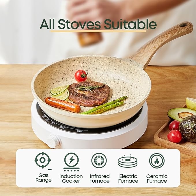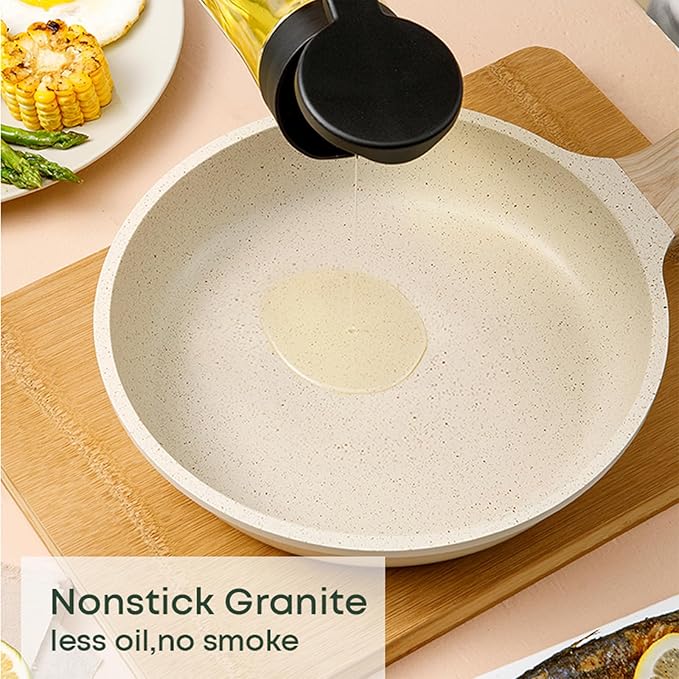 • Granite Nonstick Coating:free of PFOS and PFOA. Our cookware ensures that your daily cooking is safer and will not produce harmful substances even if it is overheated, providing you and your family with a healthier cooking environment.