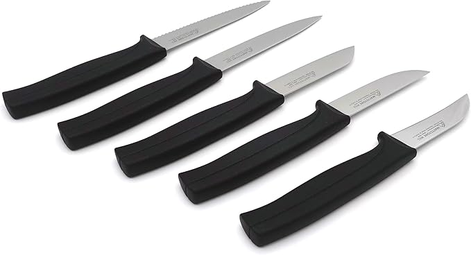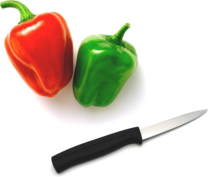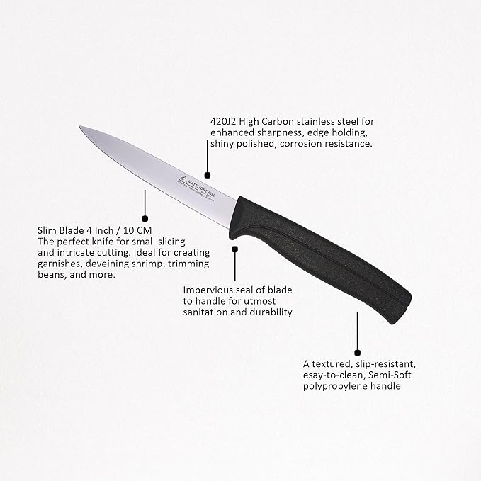 Paring Knife 4 Inch - MATTSTONE HILL Kitchen Utility Knife, Vegetable Knife, Slim Blade, Premium Stainless Steel, Semi Soft Handle, Black