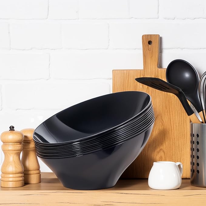 bUCLA 12 Pack Black Plastic Serving Bowls - 54 OZ Angled Bowls Disposable for Chip&Candy - Party Table Salad and Fruit for Party, Wedding & Halloween