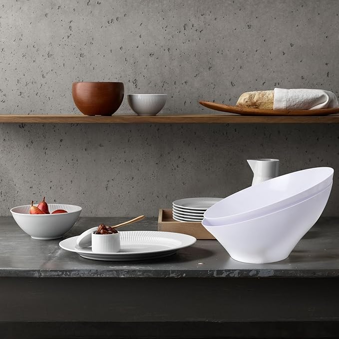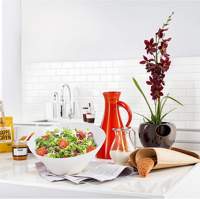 • UNIQUE DESIGN: This Plastic serving bowls features a thoughtful design with a unique slanted shape, which not only looks stylish but also makes it easier to pour food. Perfect as a Salad bowl