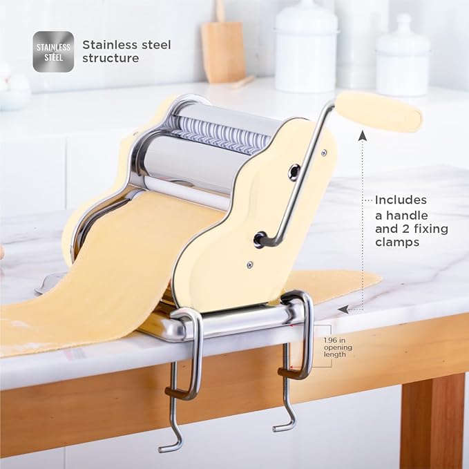 PASTALINDA Classic 200 Pasta Maker Machine, 20 cm Wide Rollers, 9 Thickness Positions, 2 Cutting Positions, Stainless Steel. Includes Reinforced Hand Crank And Two Clamps