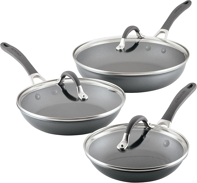 Circulon A1 Series with ScratchDefense Technology Nonstick Induction, Frying Pans/Skillets with Lids, Metal Utensil Safe, Skillet Set w/Lid (8.5", 10" & 12") - Graphite