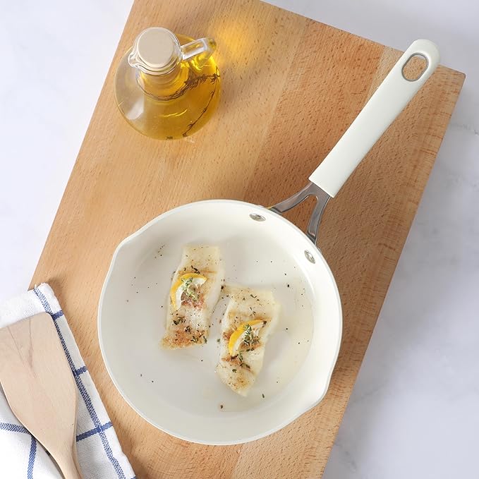 Martha Stewart Heathland 8 Inch Aluminum Fry Pan Cookware Non-Toxic Premium Ceramic Non Stick Frying Pan, Kitchen Egg Pan, Omelet Pan, Always Pan, Pots and Pans, Linen White, Induction Safe
