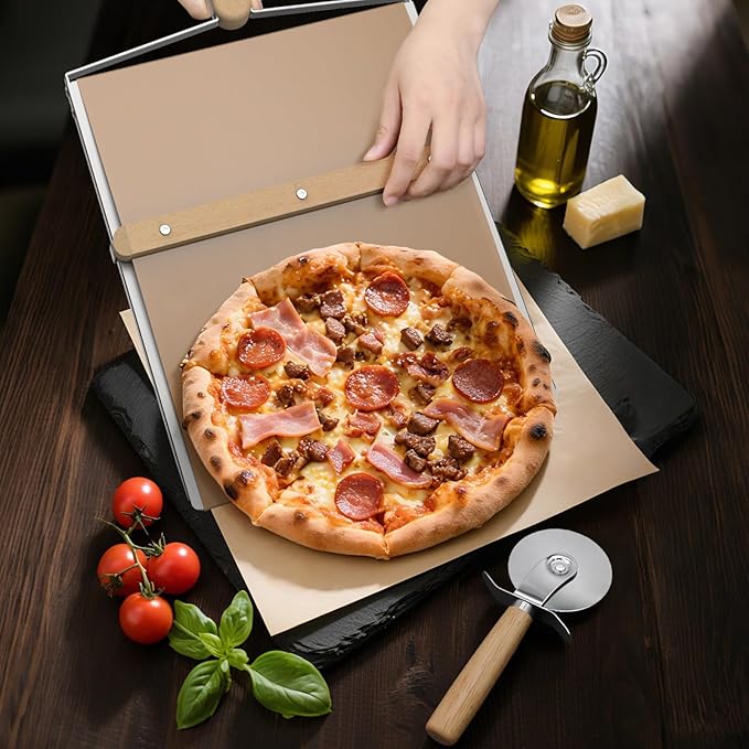 Sliding Pizza Peel 12 Inch, Non Stick Pizza Peel Slider with Wood Handle Detachable elite peel sliding pizza peel, 304 Stainless Steel Metal Pizza Board 15.4" x 12.7"