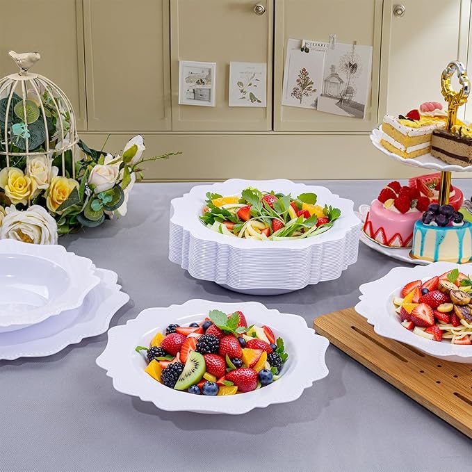 • Applicable Occasions: Our white plastic bowls set is perfect for catering services, not only meeting daily needs, but also an ideal choice for parties, weddings, birthdays, Independence Day, Labor Day, Halloween; These disposable white bowls meet diverse dining needs and make entertainment easier