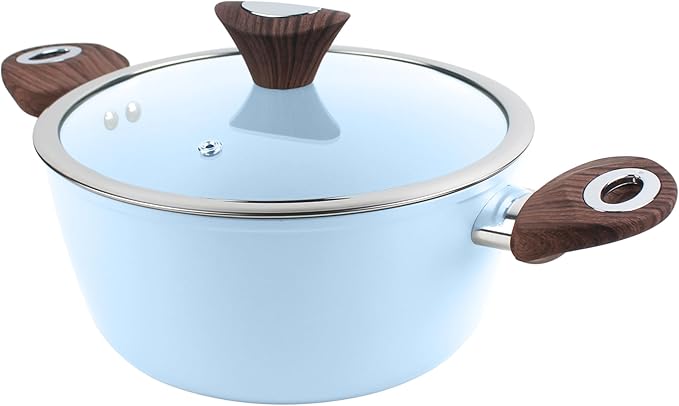 Phantom Chef 4.4 QT Casserole | Stockpot | Aluminum Body Non-Stick Ceramic Coating | With Soft Touch Stay Cool Handle | Dishwasher Safe | Non-Toxic PFOA & PTFE Free Pan | Color Light Blue