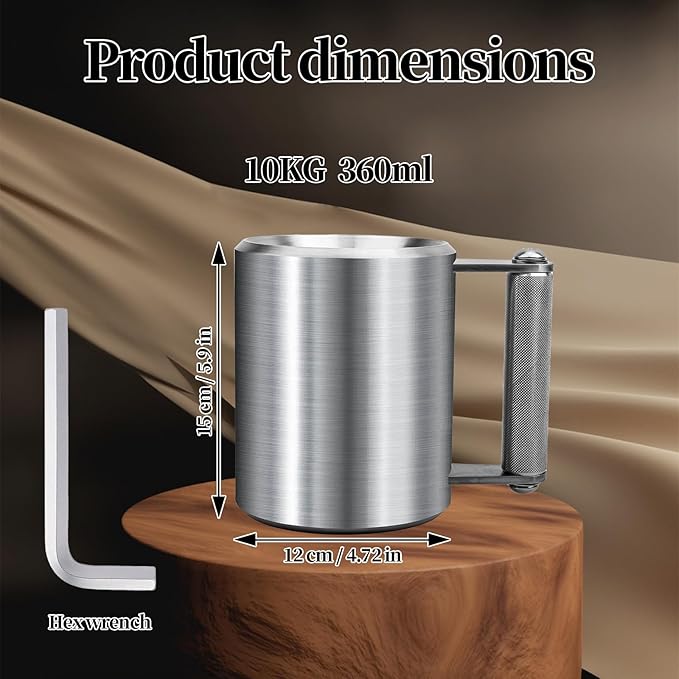 • Mug: This dumbbell Mug has a diameter of 12cm, a height of 15cm, a weight of 22LB/10KG, and a capacity of 360ML,and comes with a small hexagonal wrench