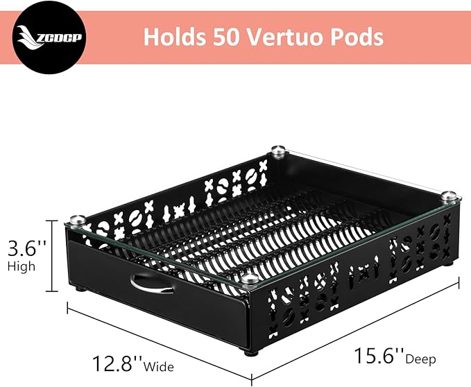 ZCDCP for Coffee Pod Holder, Vertuo Pod Holder Drawer Glass Top Coffee Pod Organizer Storage (50 Pods Capacity)