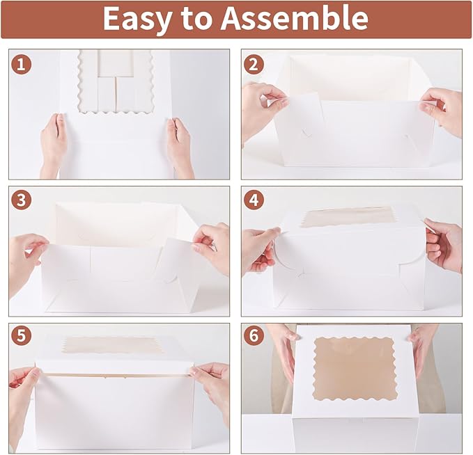 • Easy to assemble: The disposable 10 in cake boxes containers with lids is pre-folded and you can follow the steps on the box's indentation and picture to assemble.