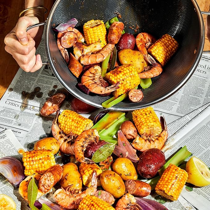 • HexClad’s patented Hybrid technology features a laser-etched hexagonal nonstick surface that combines both stainless-steel and our TerraBond ceramic coating for the ultimate sear and easy cleaning.