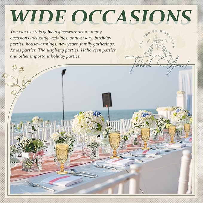 • Package Includes: you will receive a package of 48 vintage stemware with a 7.5 oz capacity; Whether it's wine glasses for a sophisticated dinner party or juice glasses for a casual Sunday brunch, we have the quantities to meet your use and replacement needs