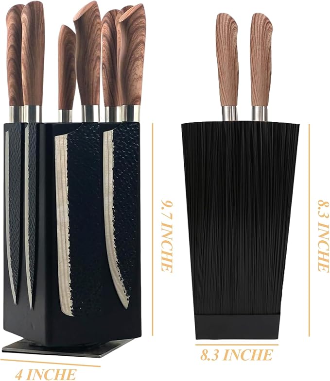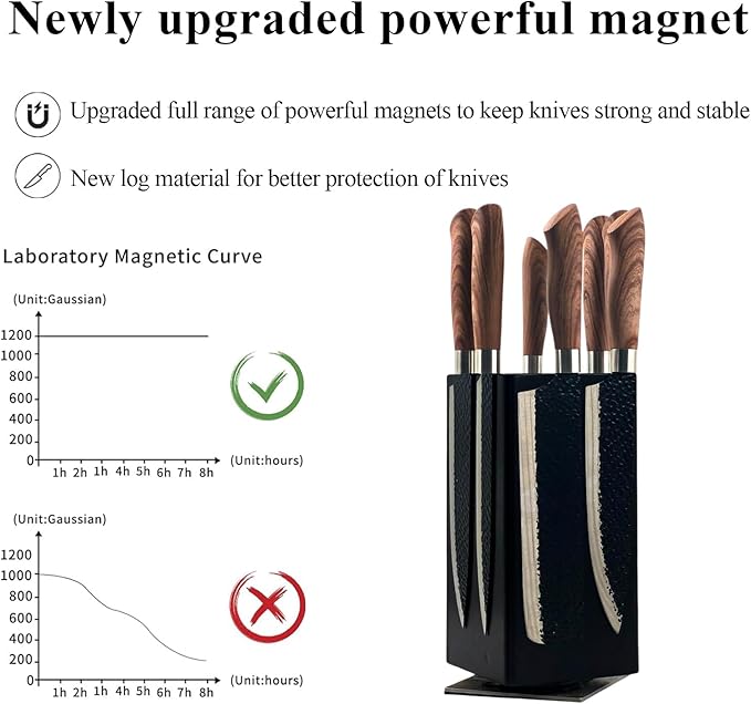 • The Strong and Enhanced Magnets: embedded in the wooden block ensure that your knives are securely held in place, preventing them from falling out or becoming damaged.