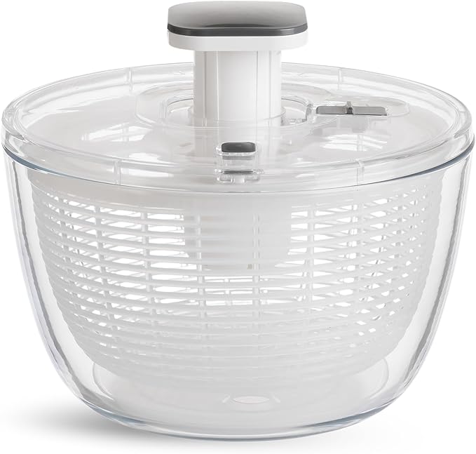 Glass Salad Spinner 6.3QT with Storage Lid | One Handed Press Lettuce Spinner | Salad Spinner for Washing, Spinning, and Draining Greens, Fruits, and Vegetables