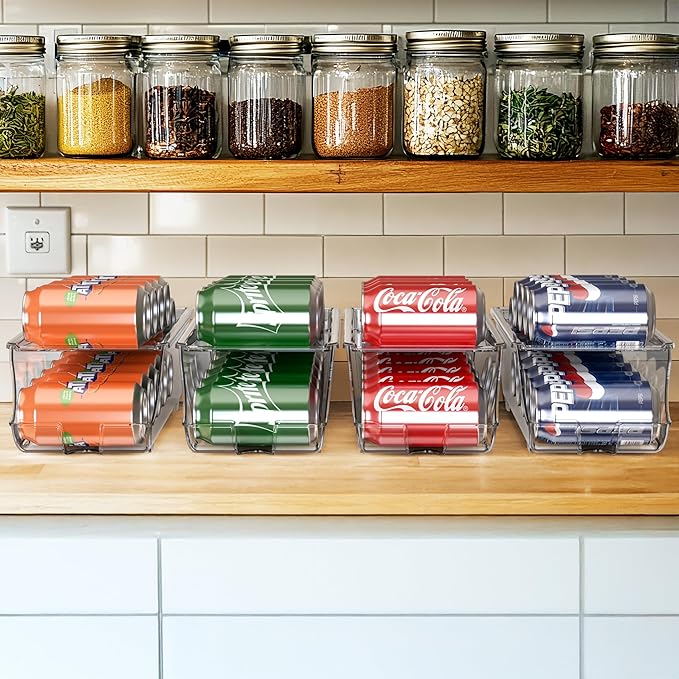 Simple Houseware 4-Pack Front-Loading Beverage Soda Can Organizer Dispenser, Clear