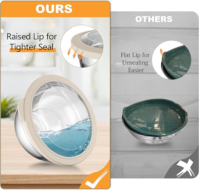 • USEFUL LIDS: These airtight lids with raised lip for sealing tightly, Helping keep the food fresh in the refrigerator for longer time and leak-proof, The lids with transparent design allow you to see the food inside the bowls and no need to open, Convenient for checking what’s stored, Arched design on one sides of the lid for easy opening and closing