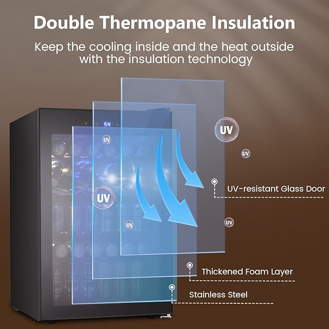 • [Versatile Beverage Storage]: Whether you are preparing for a party or you want to enjoy fresh drinks anytime, the 4.5 cu.ft beverage refrigerator can fit up to 145 standard cans! Fresh, cool beverage anytime!