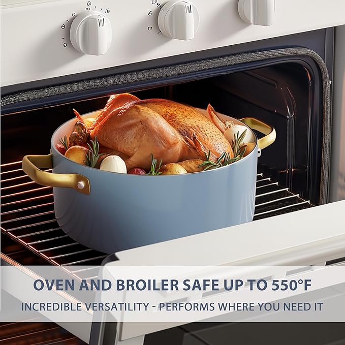 • 【For all Stovetops Except Induction】- The nonstick cookware set does not have a magnetic induction bottom, which allows faster heating on other cooktops, saving time and energy. Oven safe up to 550°F