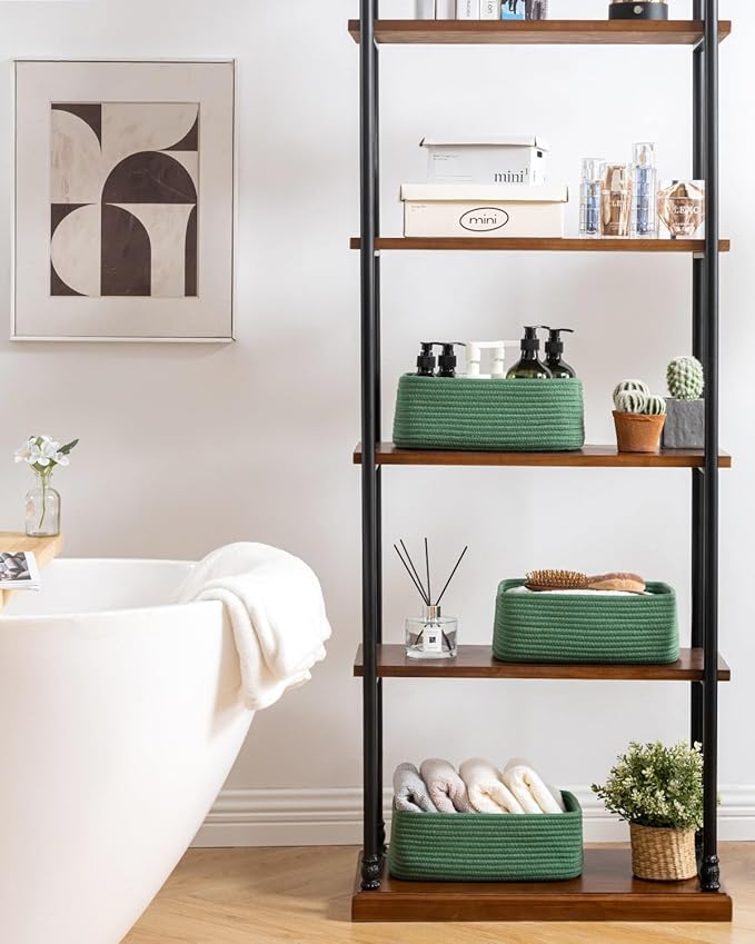 Small Woven Basket, 12 x 8 x 4.5 Inches, Storage Basket for Organizing, Cute Small Rope Shelf Closet Cube Storage Bins Baskets for Shelves, Dog Toy Gift Baskets Empty, 3 Packs, Green