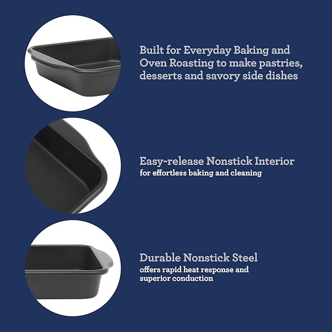 • EASY-RELEASE NONSTICK PERFORMANCE: Perfect for making pastries, desserts and side dishes, this cake pan is easy to clean and is designed to everyday use