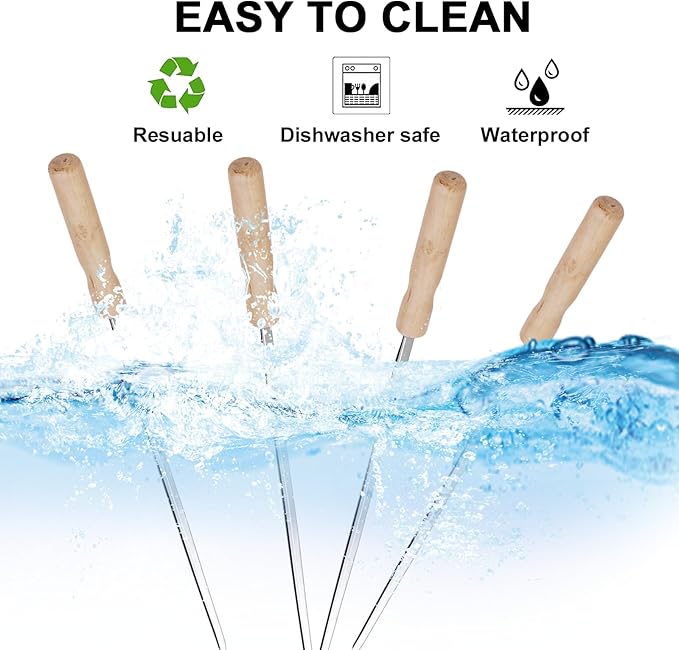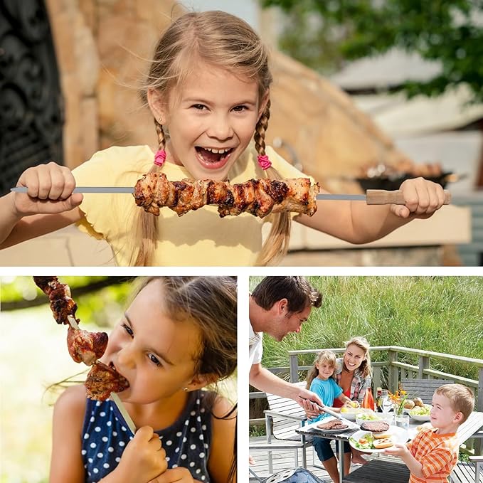 • Easy to Clean and Reusable: The smooth stainless steel surface makes cleaning simple. Just wash and reuse, making these skewers an eco-friendly choice for all your grilling needs