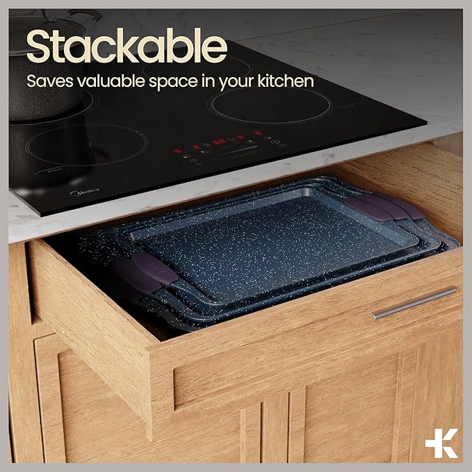 • VERSATILE & SPACE-SAVING: This stackable baking pan set is perfect for any kitchen, providing versatility for baking cakes, muffins, cookies, and more. Its space-saving design allows easy storage, making it ideal for home cooks and professional kitchens.