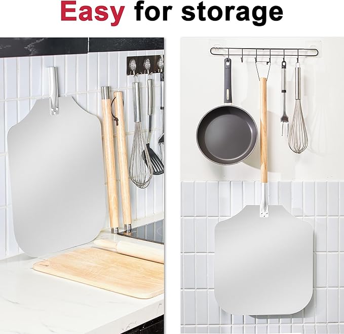 • EASILY DETACH HANDLE FOR EASY STORAGE: set up/store your pizza peel without any tool! Simply loosen/tighten the handle of the pizza peel with just your hand
