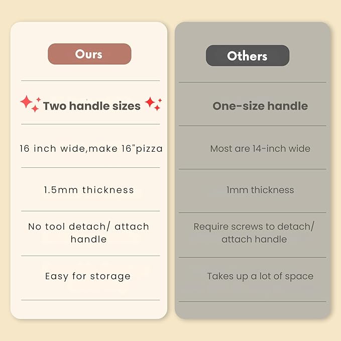 • 1.5MM THICKNESS: thicker than most other aluminium pizza peels on the market. No more wobbly feeling when moving heavy pizza from one place to another