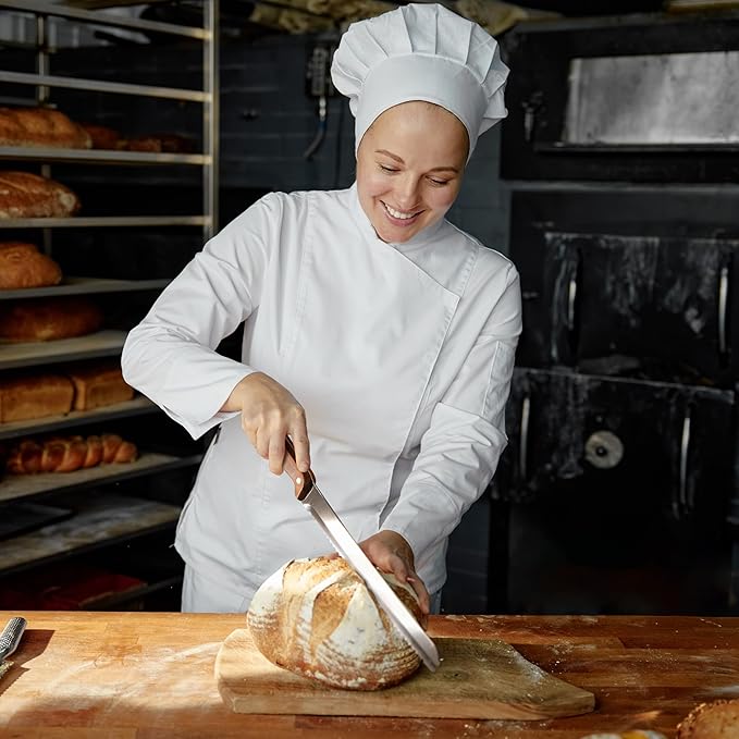 • 20% THINNER BLADE FOR EXCEPTIONAL SHARPNESS: Unlike standard bread knives, our ultra-thin, razor-sharp edge glides effortlessly through bread without tearing. Enjoy uniform, thin slices for sandwiches or thick, even cuts for big loaves and crusty sourdough rounds. This knife is designed to handle any bread type with ease.
