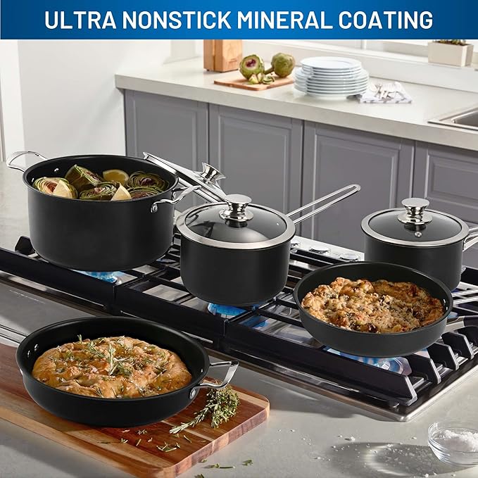 • Modern Essentials - Upgrade your kitchen with our 10-Piece contemporary cookware set, perfect for crafting delicious meals every day! stainless steel design and ergonomic handles fit any kitchen décor while delivering professional cooking results for all dishes, big or small.
