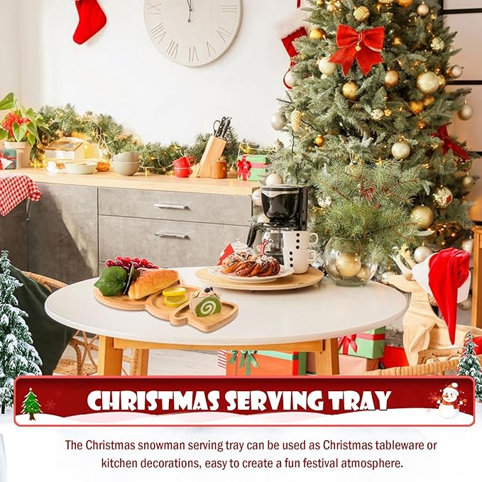 AWIZOM Snowman Wooden Serving Tray Christmas Bamboo Platter Winter Snowman Shape Charcuterie Board Decorative Wood Snack Dish Plate for Xmas Holiday Housewarming Present,14.17x8.15x0.59 Inch