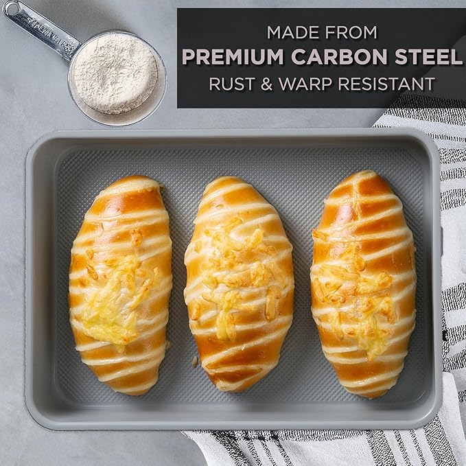 • Premium Bakeware Set: Our high-quality, heavy duty bakeware set includes six pieces, each designed for durability and performance. These baking sets offer a superior nonstick silicone coating, great for effortless food release and easy cleaning, making them ideal for the home cook