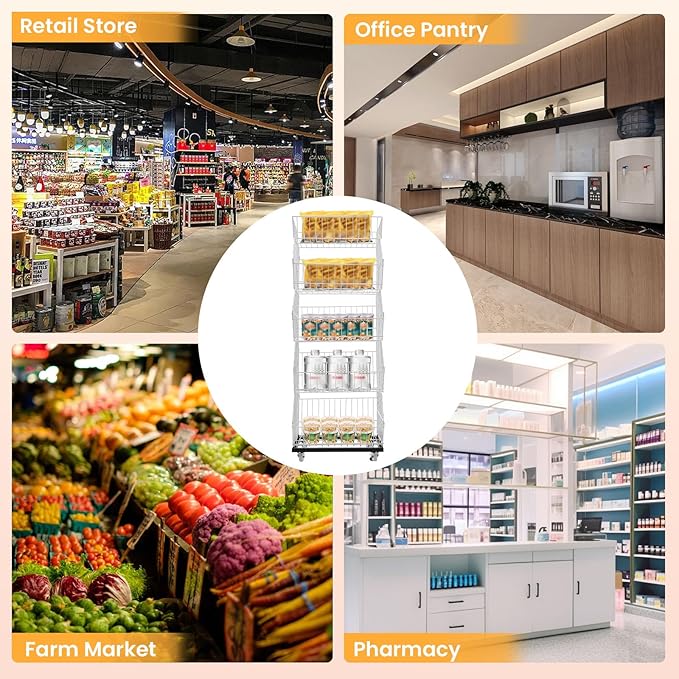 • Storage Assistant: The 5-tier design provides sufficient space to store fruits, vegetables, toys, books, snacks(all are not included), etc., placing your sale items in an orderly manner to attract customers.