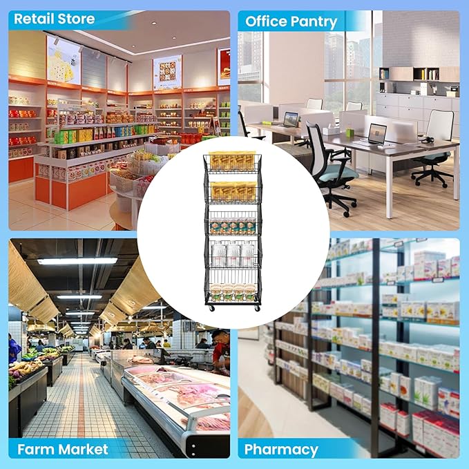• 【Large Capacity】 The 5-tier design provides sufficient space to store fruits, vegetables, toys, books, snacks(all are not included), etc., placing your sale items in an orderly manner to attract customers
