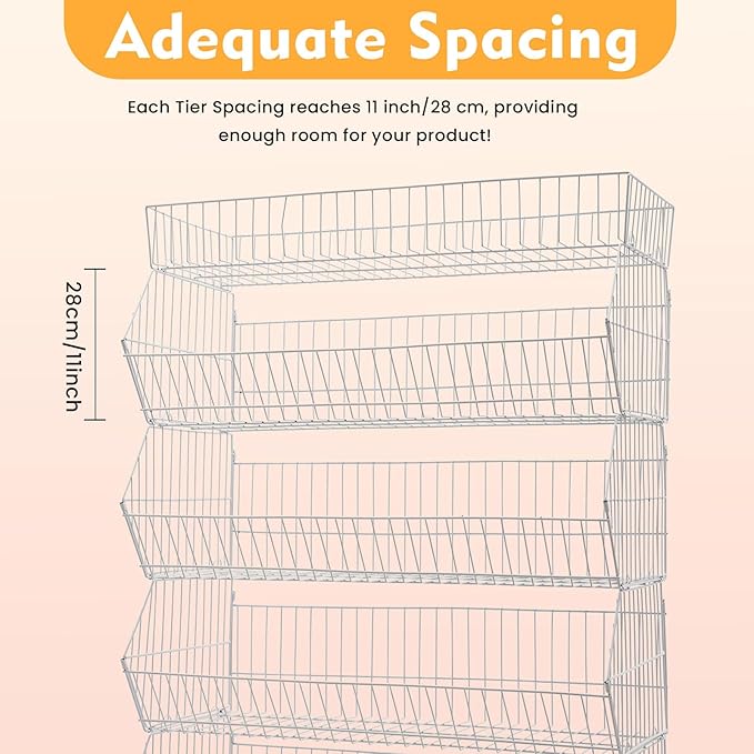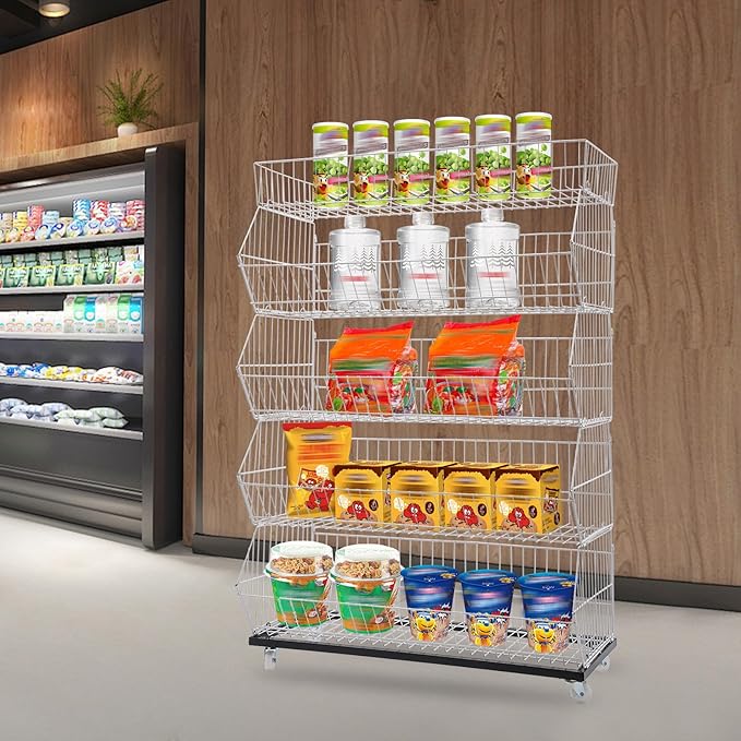 • Open Structure: The open structure with slanted baskets allows customers to see products at a glance, making them easy to select and pick up